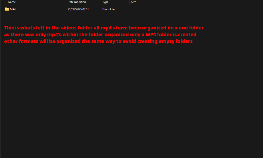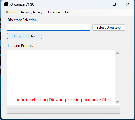 categories.jsonand the running executable) to ensure your system remains stable. - Progress Logging: Keep track of the organization process with real-time logs displayed in a console interface.
